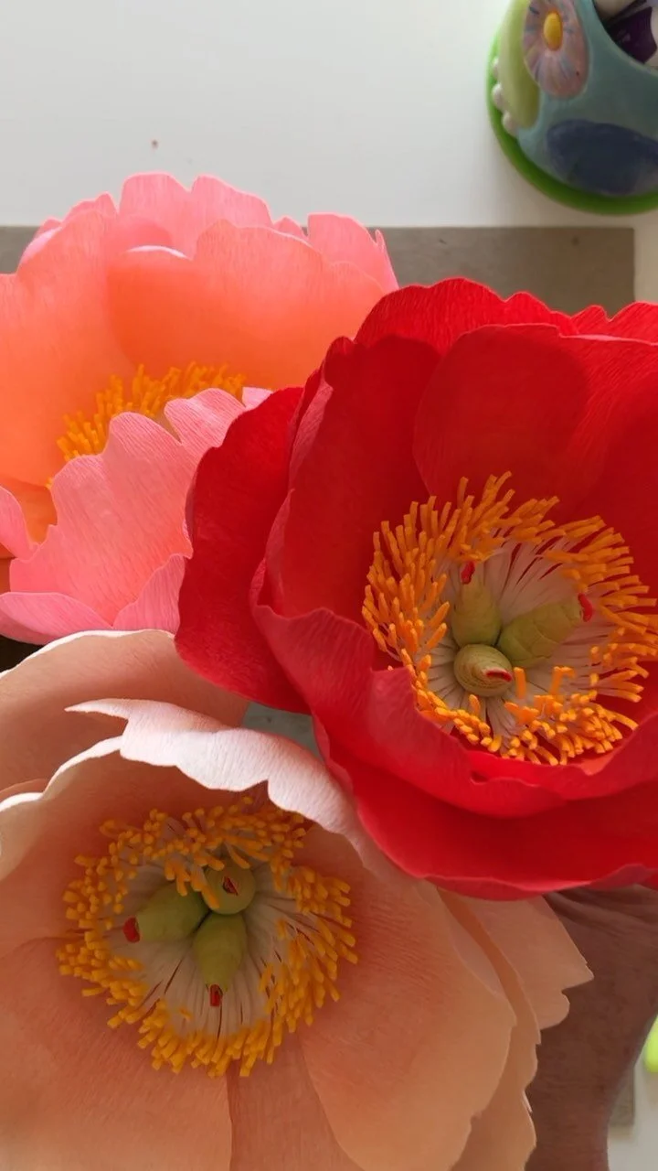 I also teach in-depth workshops on Zoom and in person. If you enjoy learning from me in real time, getting support and being able to ask questions while making your flower, a workshop is a great place for in-depth learning about paper flower making and techniques. I also offer workshops for private parties or corporate events.